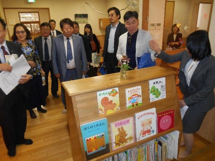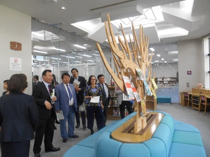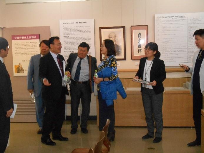 このたびの来校は、日本私立大学協会からの依頼によるもの。当日は、博物館やナースリールーム、調理学実習室や図書館に加え、食堂や幼稚園なども見学。代表団の人々が、それぞれの施設の説明に熱心に聴き入る姿が見られ、終始和やかな雰囲気のなかで交流が深められた。