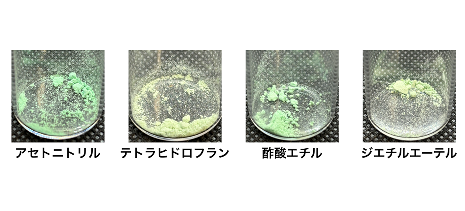 本研究では、VOC応答範囲も調べ、その結果、アセトニトリル(配位能: -0.2)、テトラヒドロフラン(配位能: -0.3)、ジエチルエーテル(配位能: -1.4)、酢酸エチル(配位能: -0.9)などの配位能が低いVOCの蒸気もセンシングできることがわかった(図3)。これらの結果は、対アニオンの可逆的な配位を利用したベイポクロミズムが、さまざまな配位能が低いVOCの検出に利用できることを示している。