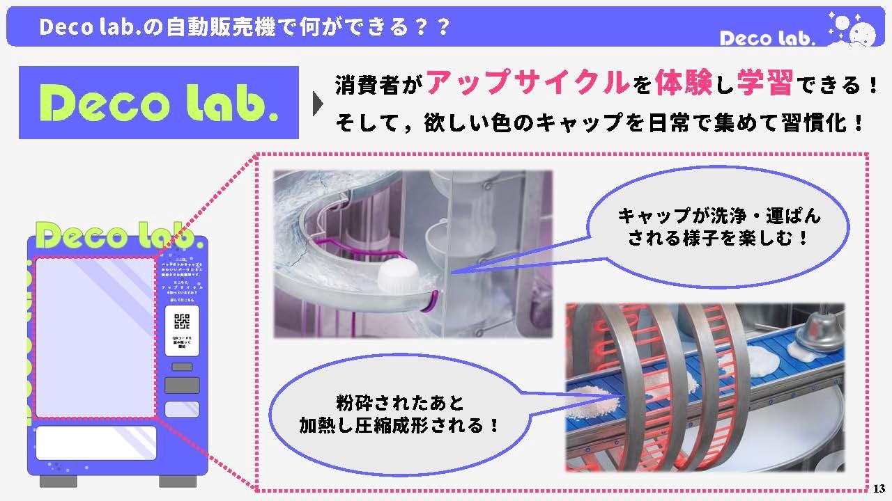 【アイデア名】自動販売機「Deco Lab.」 サステナブル×カワイイの自販機革命