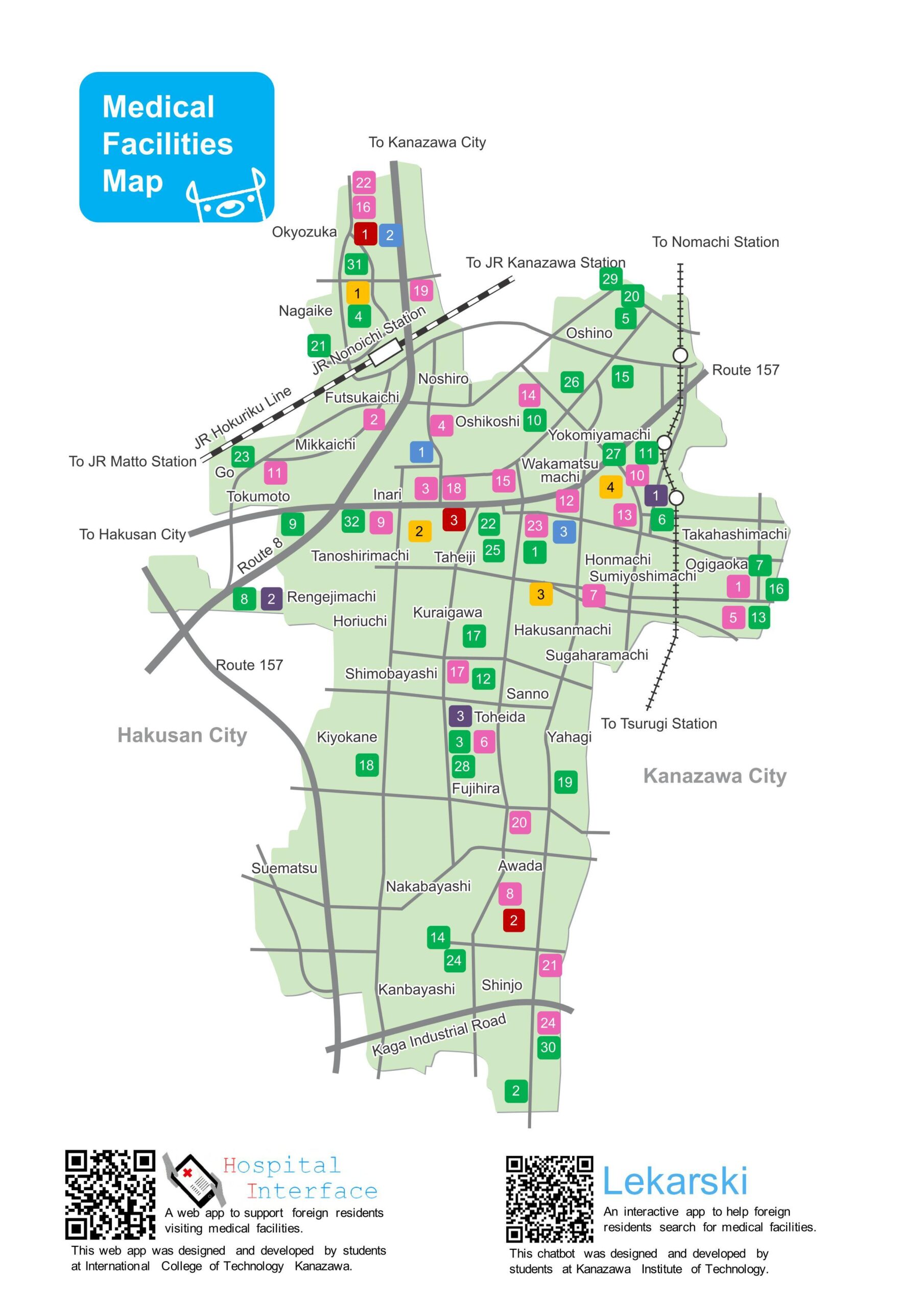「野々市市内医療機関一覧マップ」の英語版パンフ・アプリを作成 2016.2.10