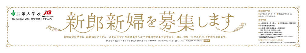 共栄大学が株式会社JTBとの産学連携プロジェクト「ワールドラン2018」のカップルを募集中 — 学生たちが本物のウエディングをプロデュース(2018.08.02)