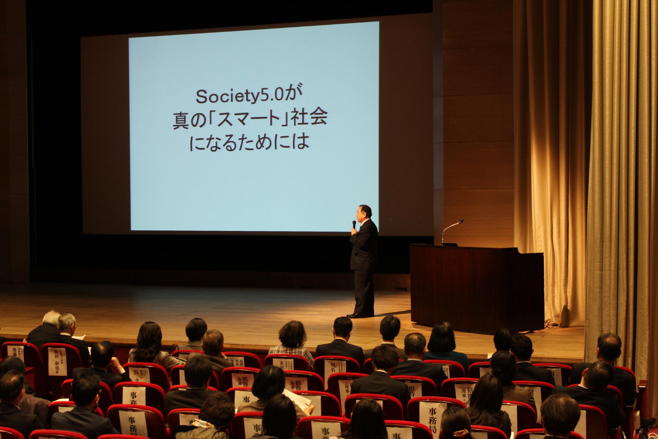 北川学長は講演の最後を、「Society5.0は目前に迫っている。教育が成果を上げるには時間がかかるため、実際に社会で働く人たちの意識を変え、行動を起こしていくことが重要であり、そのために大学は協力を惜しまない」という言葉で締めくくった。