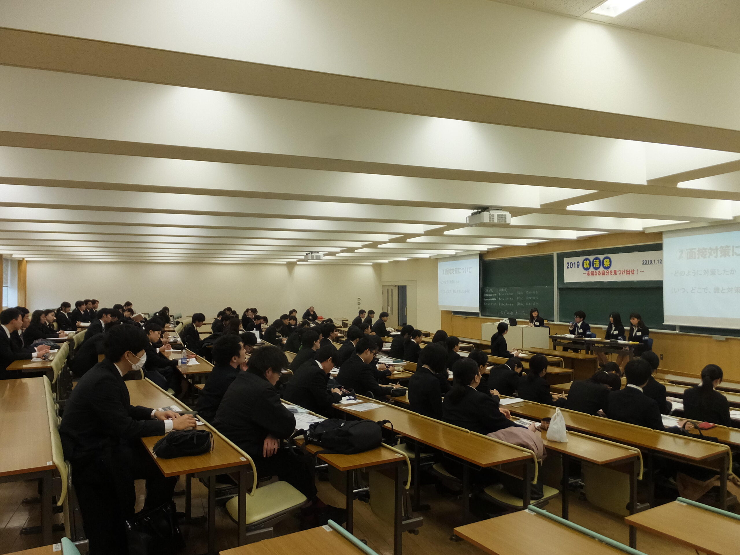 今回で17回目となる「就活祭」は、就職活動情報解禁前や解禁直後にスタートする企業の選考や低年次からのインターンシップ参加などにより、学生の就職活動に関する意識や活動が早期化しているため、2019年1月12日(土)に実施した。