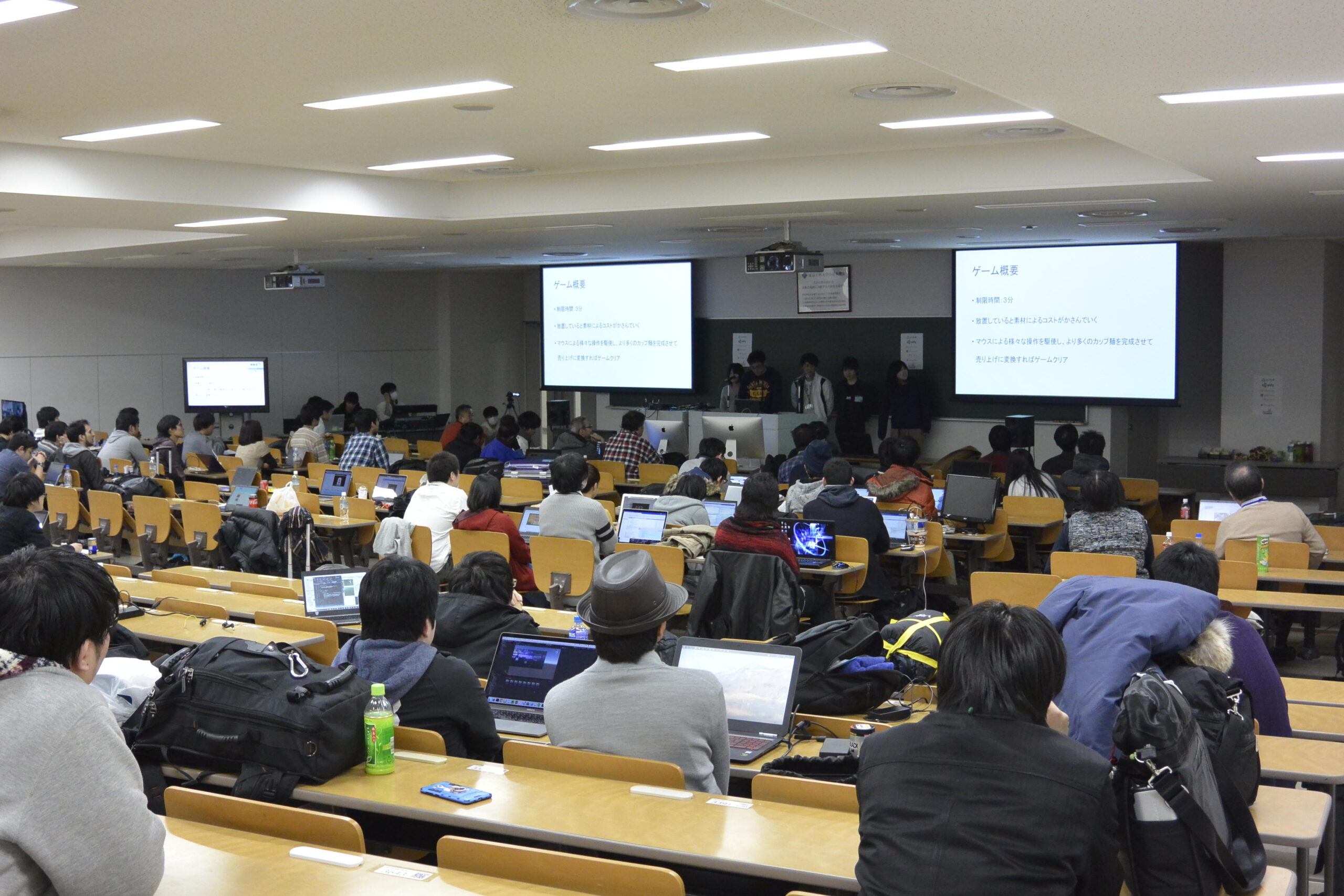 本学では、国内大学として初めて2010年から連続で学生らがゲーム開発や会場運営、ライブ配信などに参加しており、毎年100名前後が参加する国内でも最大規模の会場の一つとなっています。また、メディア学部の教育の一環として、学生がプロとチームを組んで企画からプログラミング、デザインといったゲーム開発の様々なプロセスを短期間で体験できる実学の場となっており、参加した学生の多くが卒業後もゲームや関連業界で活躍しています。