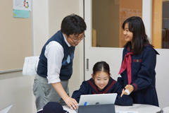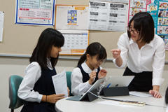 丸山教諭は「明星小学校では2020年のプログラミング教育必修化に向けて(1)プログラミング的思考を伸ばすリテラシー(仮説を立てて→動かす→問題を修正するプロセス)と、(2)プログラミングを楽しむ(より専門的なプログラミングの芽を育てる)という二本柱の学習目標を掲げ、今回のプログラミング教室では、(2)のプログラミング的思考力を身につけさせることを目的とし、さらに、来年中学校に進学する6年生など高学年を主な対象とすることで、この授業を上級学校へつなげる橋渡しの役割も担う授業としています。また、今回のような専門的なプログラミングの知識を習得する授業と、コードを書かず、楽しみながら学ぶプログラミング教材を使った授業のそれぞれ良い点を補完しあえる授業を目指していきたい」とも話しています。