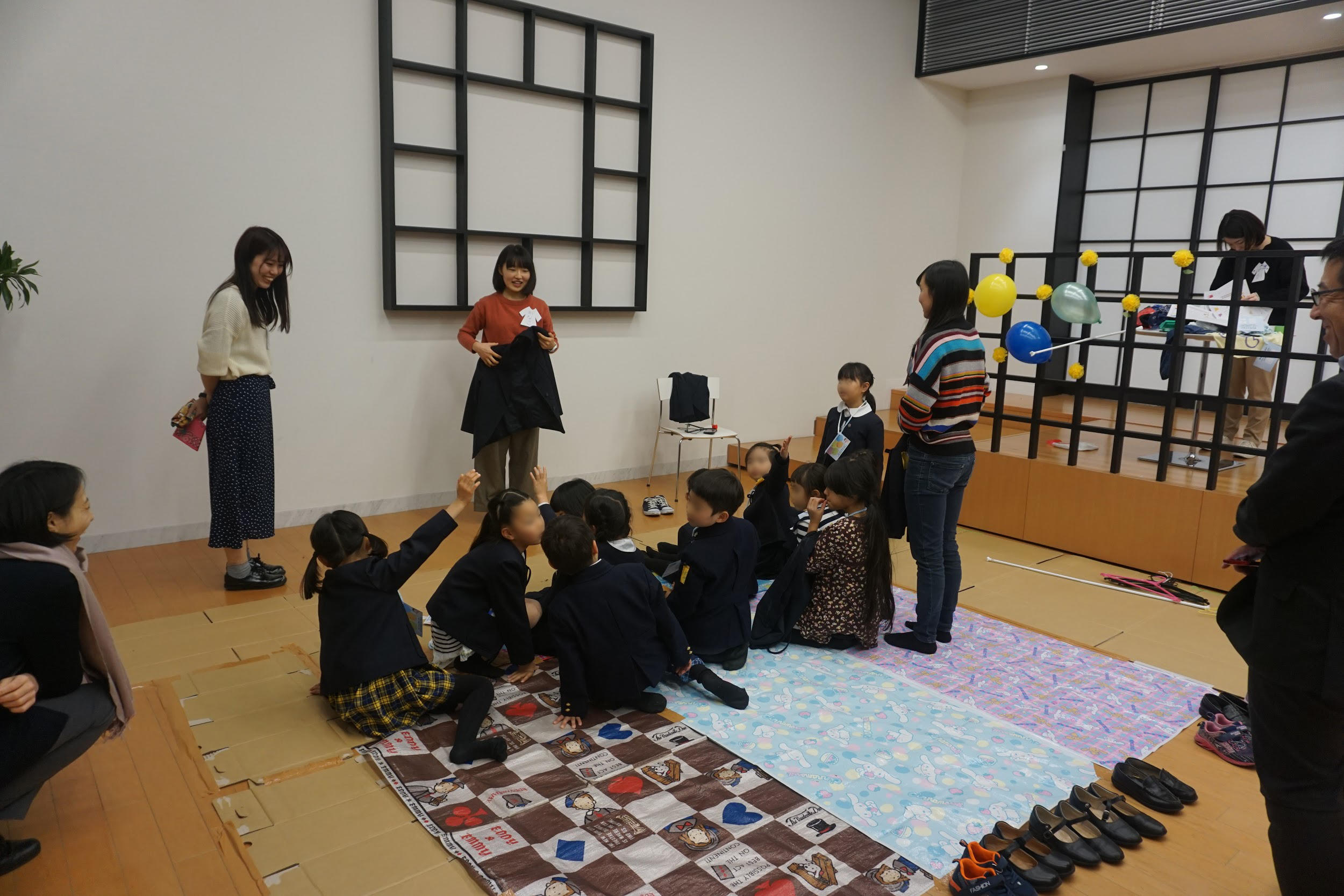 12月19日には「家事改革」をテーマとするチームが、附属小学1・2年生22人を迎え、楽しく家事を分担するワークショップ「家事ミッション ママ・パパを救え!」を開催。子どもたちが家事を分担することで、親の負担を軽減する方法を試行しました。
