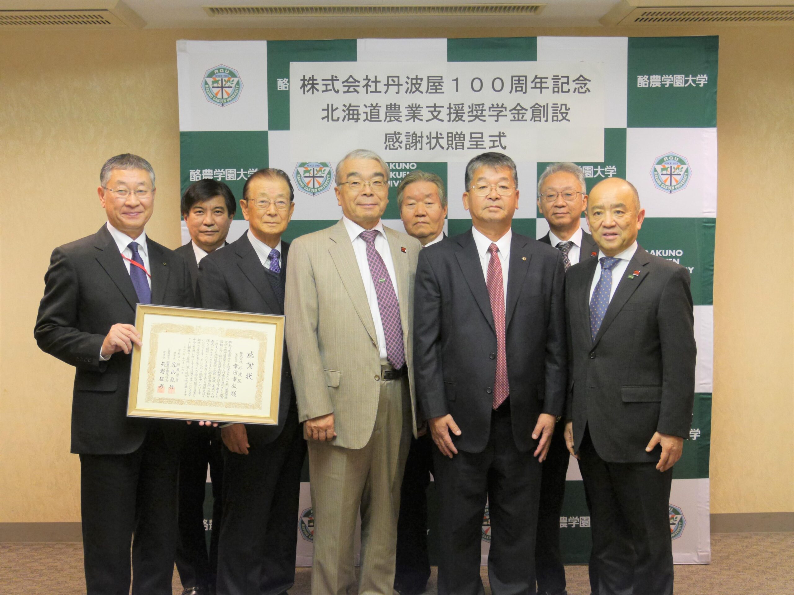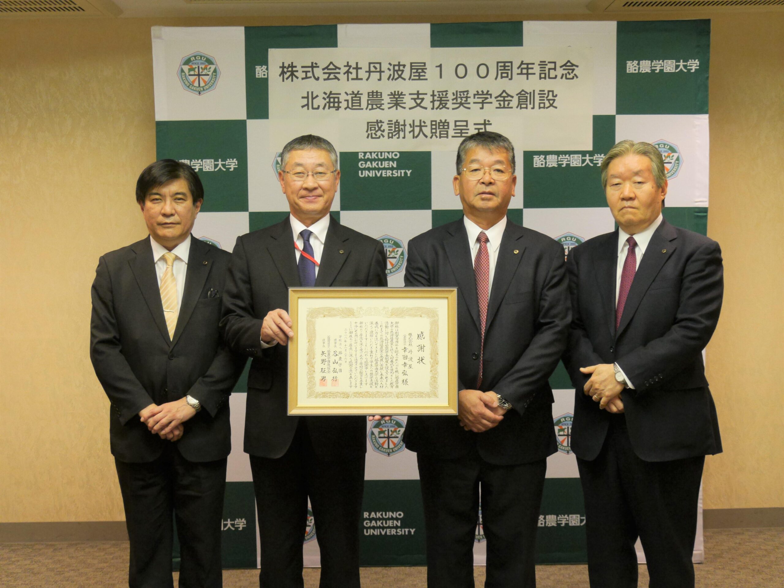 ・株式会社丹波屋100周年北海道農業支援奨学金創設感謝状贈呈式を開催(酪農学園大学公式サイト内関連ページ)