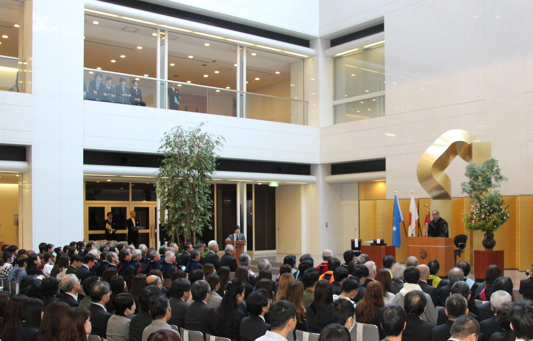 授与式終了後には、クリスチャン大統領に「若人が未来を拓く~ミクロネシアからのメッセージ~」と題してご講演いただき、「私は、シリアスなスピーチをしたことがない」などとユーモアを交えながら、「学生の皆さんには自分の意思を信じ、たくさん勉強してもらいたい」とメッセージを送られました。