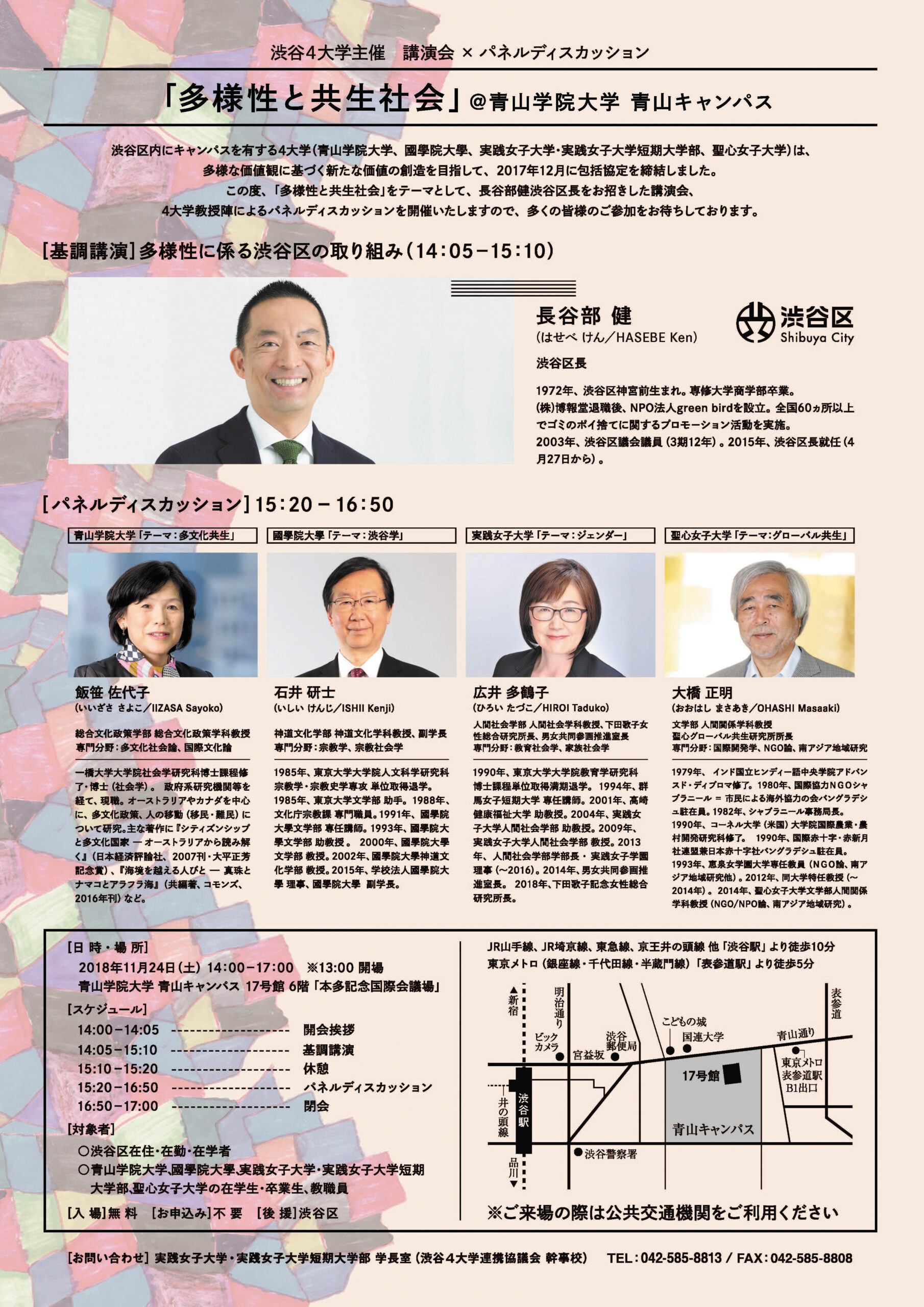 青山学院大学×國學院大學×実践女子大学・短期大学部×聖心女子大学 渋谷4大学主催 講演会×パネルディスカッション「多様性と共生社会」 11月24日(土)青山学院大学 青山キャンパスで開催 ~取材のご案内~
