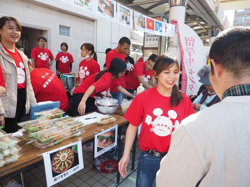 聖学院大学(埼玉県上尾市、学長:清水正之)の留学生ら17名が、10月28日(日)にJR宮原駅西口駅前広場を中心に開催された、「さいたまKI-TAまつり」(さいたま北商工協同組合主催)にベトナムフードのお店を出店しました。メニューはベトナム風のサンドイッチ“バインミー”や“生春巻き”など。好評のため途中で売り切れてしまったメニューも続出。留学生の出身はベトナムが13名と多く、またネパール出身の学生も2名おり(日本人学生も2名参加)、ネパールのメニューとして“マンゴーラッシー”を販売しました。お揃いの赤いTシャツを着て明るく元気に接客をする留学生たちに対して、地域の方々からの良い評価をいただき地域の活性化に貢献しました。