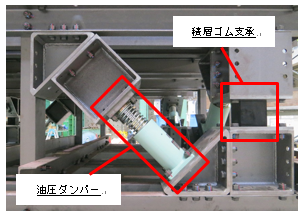 ○制震構造(※1)の主要部材である減衰装置(油圧ダンパー)と免震構造(※2)の主要部材である積層ゴム支承(※3)との組み合わせにより、従来のパッシブ型制震構造が有する減衰性を大幅に上回る性能を発揮。