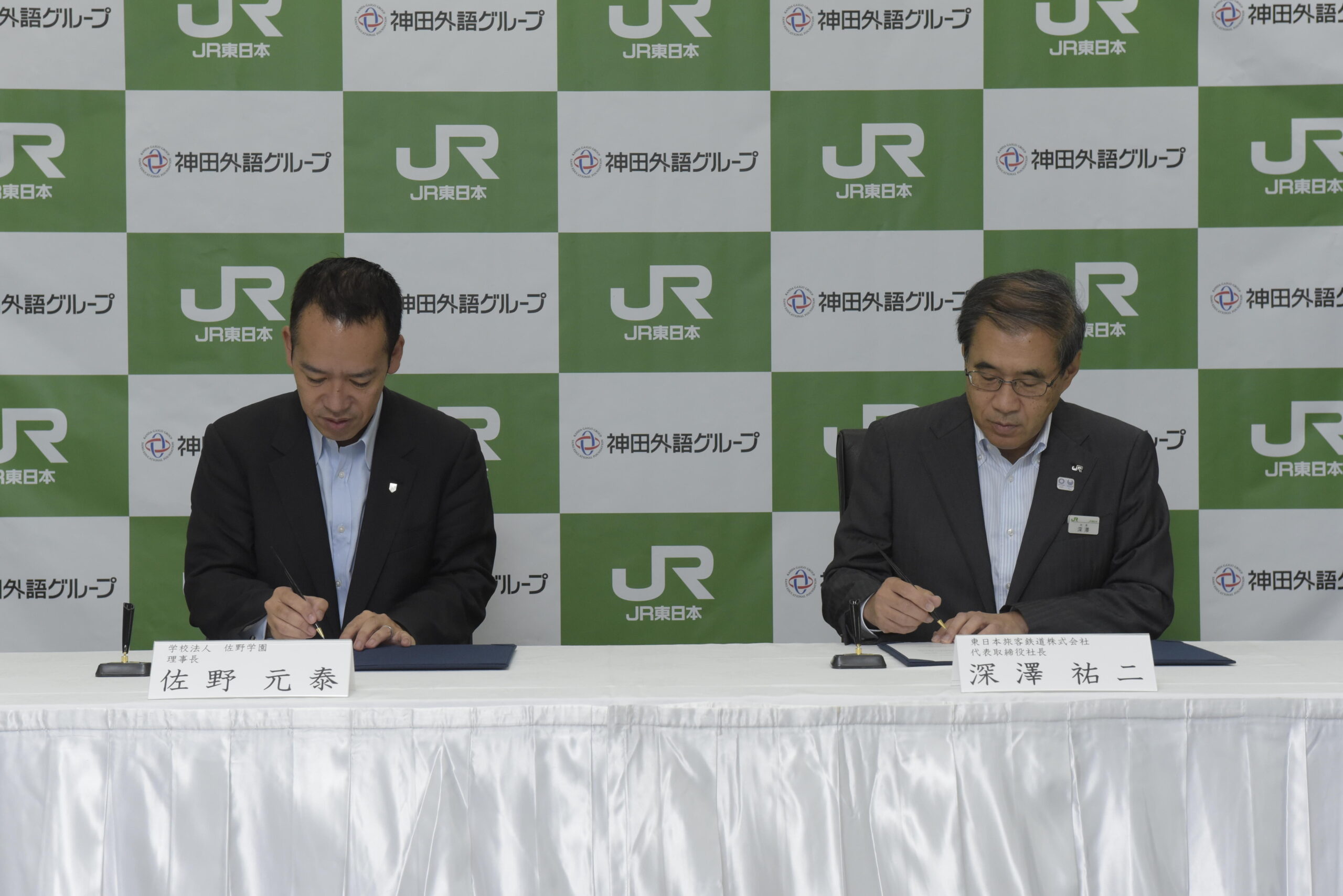 学校法人 佐野学園(東京都千代田区、理事長 佐野 元泰/以下「神田外語グループ」)と東日本旅客鉄道株式会社(本社:東京都渋谷区、代表取締役社長 深澤 祐二/以下「JR東日本」)は、9月21日に地域貢献と人材育成を推進することを目的として、包括的連携に関する協定を締結した。