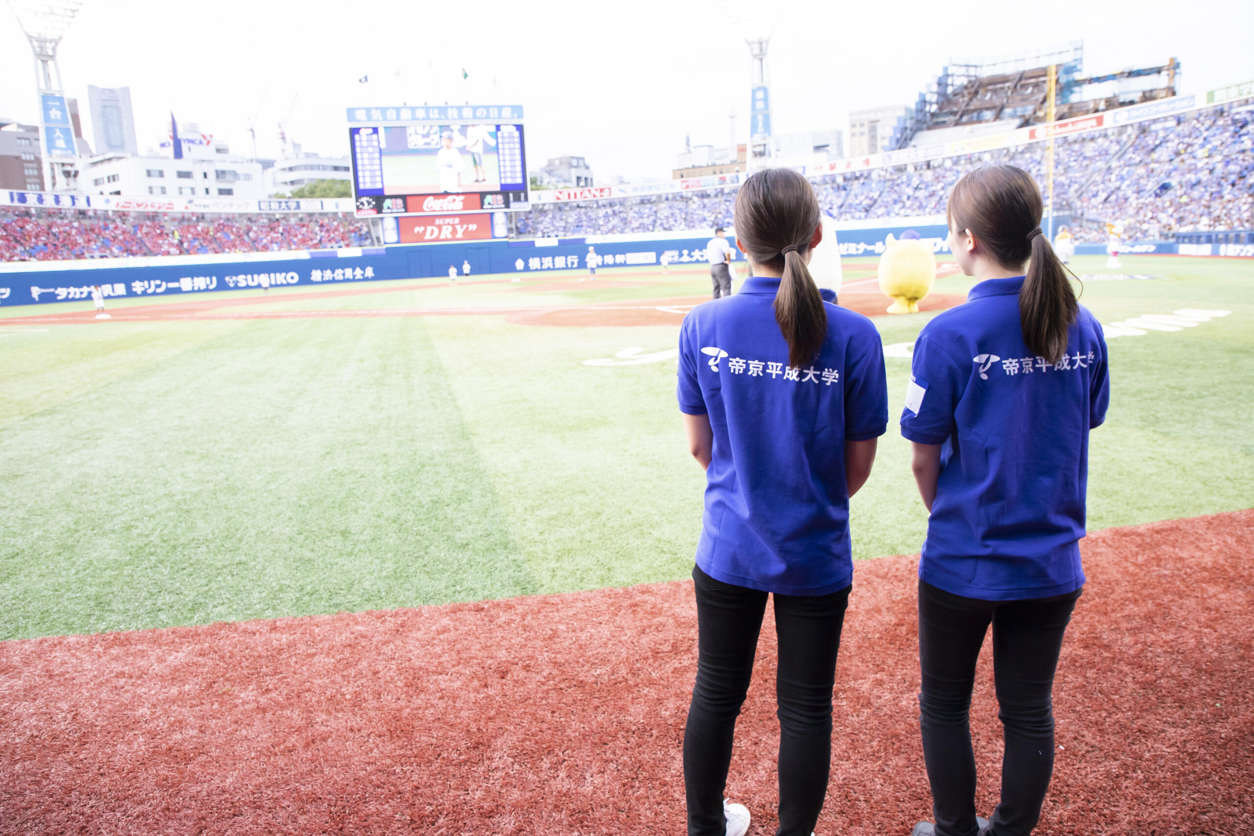 横浜DeNAベイスターズが主催する8月19日(日)広島東洋カープ戦において「帝京平成大学デー」を開催。現代ライフ学部 観光経営学科の学生が授業の一環として企画・運営に携わり、試合を大いに盛り上げた。