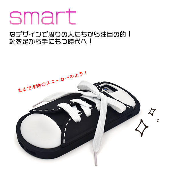 スニーカー型のスマホケースです。靴紐は交換可能ですから、リボンやレースなどを通してオリジナルのスマホケースを作ることができます。色はピンク、グレー、黒の3色を用意しました。今日は可愛くピンクにしようか、黒でカッコよく決めるか。それとも渋くグレーで迫るか。着せ替え感覚でスマホケースを楽しんでください。