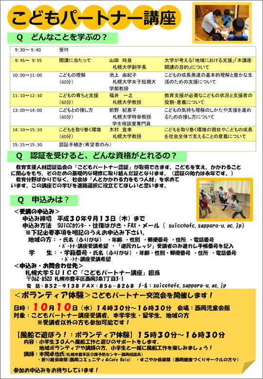 札幌大学 インターコミュニケーションセンター(SUICC)「こどもパートナー講座」担当