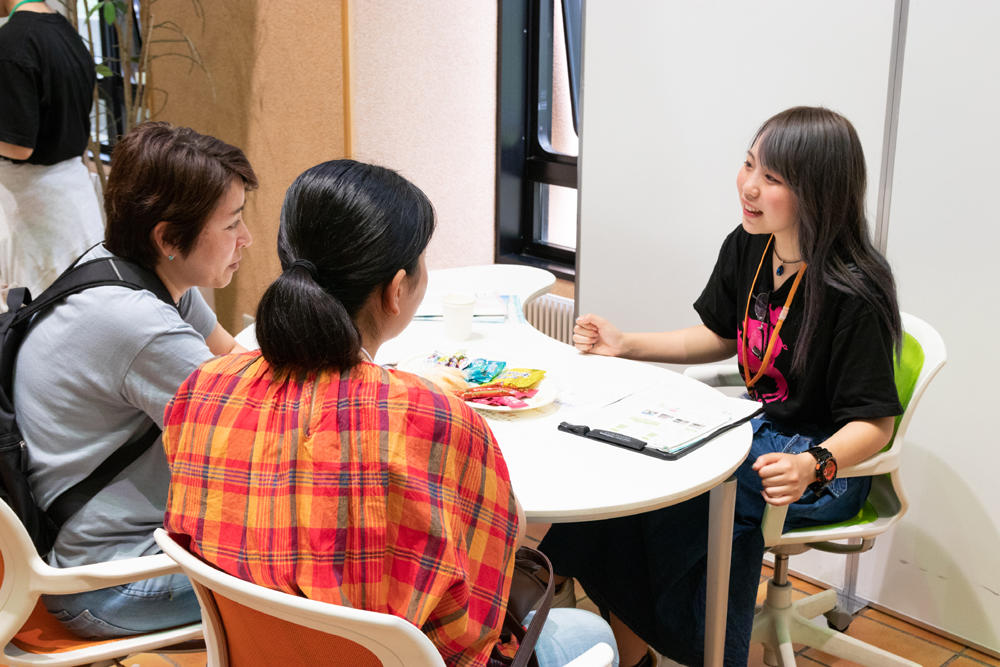 さらに個別相談コーナーでは、各学類の教員や学生と面談して、学類での学びや大学生活について気軽に質問することができる。そのほか、入試に関する個別相談コーナーも設け、入試広報センターの職員が「自分にはどんな入試制度が合う?」「昨年の倍率は?」といった質問に答える。
