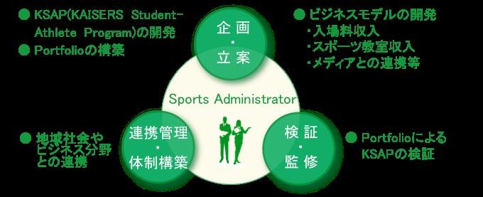 来る人生100年時代を視野に置き、地域社会における健康増進、余暇の充実を担う指導者の育成を主たる目的に、学生アスリート向けに人間形成、競技力の向上を目的とする教育プログラムである「KSAP」(KAISERS Student-Athlete Program)を実践する。