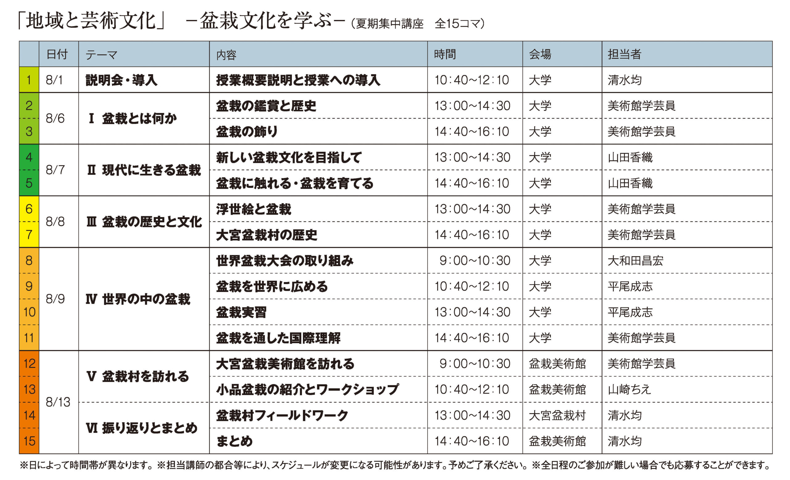 1 講座名  夏期集中講座「地域と芸術文化-盆栽文化を学ぶ-」
