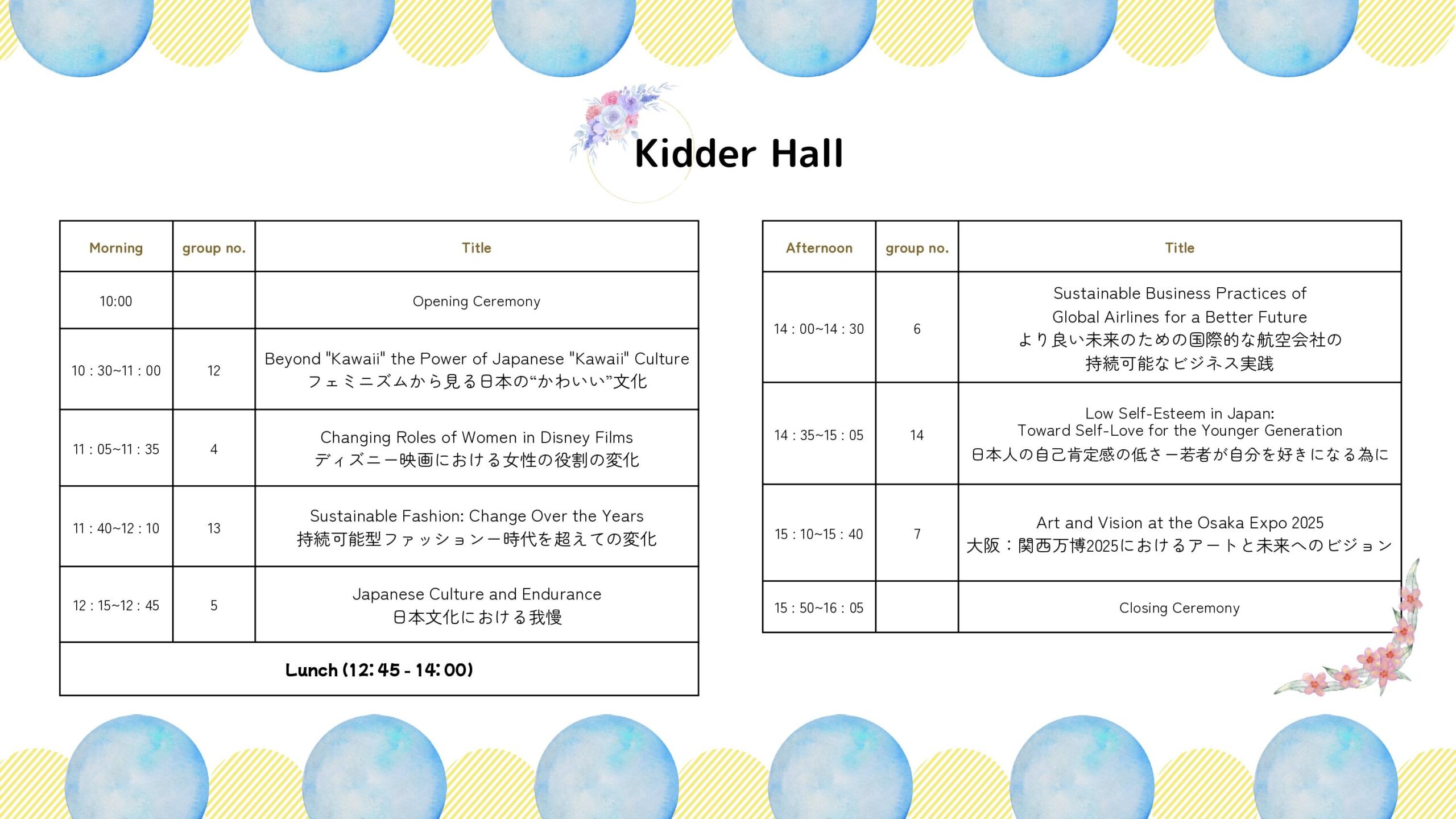 12:15 ~ 12:45   Japanese Culture and Endurance