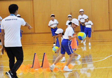 4年生の体育の授業では、制限時間内にスタートから数メートル先に並んでいるコーンを取りに行ってゴールする、点数を競うゲームを行った。台中の先生が英語でルール説明をすると、子ども達はスタートからゴールまで、途中どのようなルートを通れば良いかを確認するために、簡単な英語で台中の先生に対して積極的に質問。通訳を介さなくても子ども達は自分たちの力で先生の英語を聞いて理解し、分らないところは先生に英語で質問してゲームを楽しむ姿が多く見られ、英語に臆することなく台中の教員達と交流を行うことができていた。