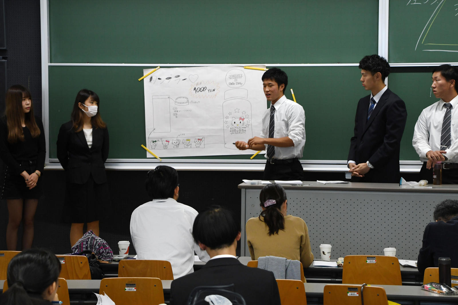 国際コミュニケーション学科では、キャリア教育の一環として開講する科目「自立と体験2」を『明星大学版ハローキティ製作プロジェクト』と題して開講。同学科に所属する1年生が、明星大学とサンリオキャラクターとのコラボグッズの企画・開発および宣伝活動を行いました。授業では、あすなろ舎のデザイナーが、デザインにおける注意点や秘密保持のルールなど、実際の社会における商品開発の過程について説明しながら進めていき、学生たちは、実社会で仕事に携わることを想定してプロジェクトを進行。