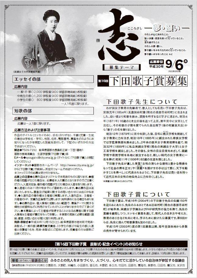<応募方法>   以下、恵那市「下田歌子賞」ホームページをご確認ください。