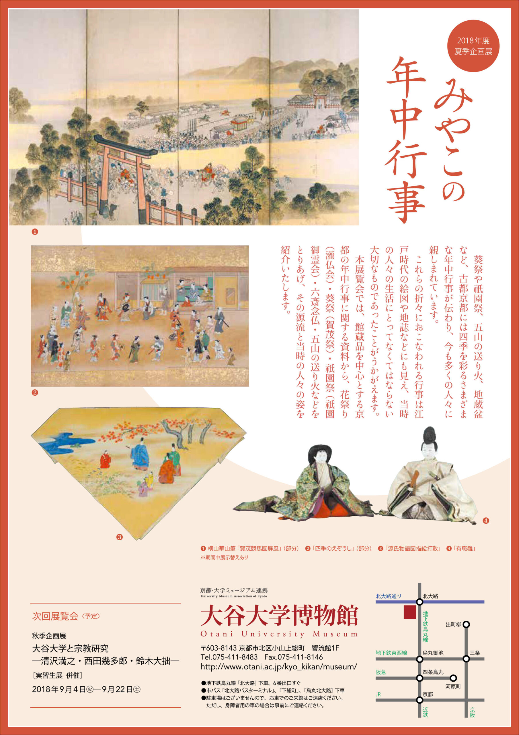 大谷大学(所在:京都市北区小山上総町)は、大谷大学博物館2018年度夏季企画展「みやこの年中行事」を、2018年6月12日(火)~7月28日(土)まで開催します。