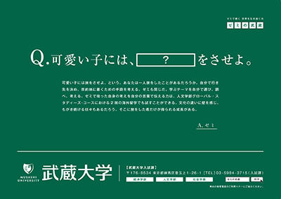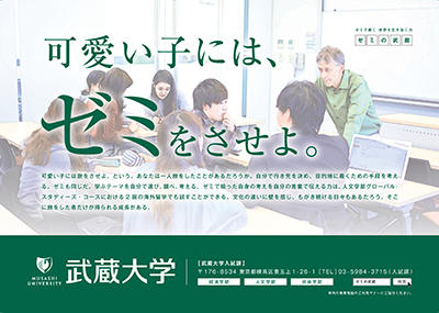 武蔵大学(東京都練馬区/学長 山嵜哲哉)は、2018年度の交通広告のデザインをSNSの投票で決定します。今回の取り組みは、交通広告のデザイン選定を通じて、学生に武蔵大学とゼミ教育の魅力を改めて考えてもらうことを狙いとしており、本学初の試みになります。投票は在学生、教職員はもちろん一般の方も参加可能です。最も得票数の多かったデザインを2018年度の交通広告に起用します。