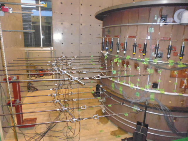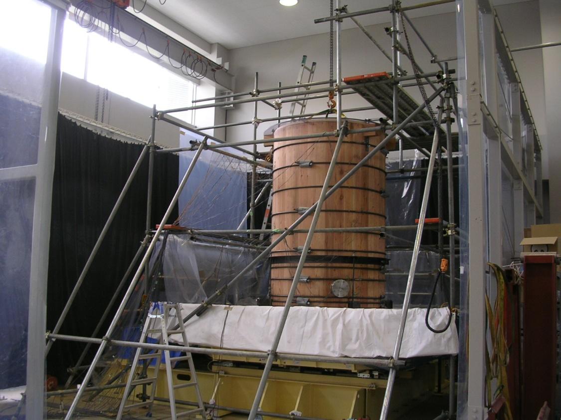 同社では耐震性能のさらなる向上を目指して、2011年から金沢工業大学後藤正美教授の研究室と共同研究を進めています。このたび「比咩の湯」に設置された木製源泉槽は内径3300×高さ3300(mm)の縦型円筒形の屋外設置木製タンクで、有効容量は20立方メートル。白山地区産の杉を使用し、設計と製造方法には後藤研究室との共同研究の成果を取り入れています。また木槽の内部には漆を塗布し、耐久性を高めています。