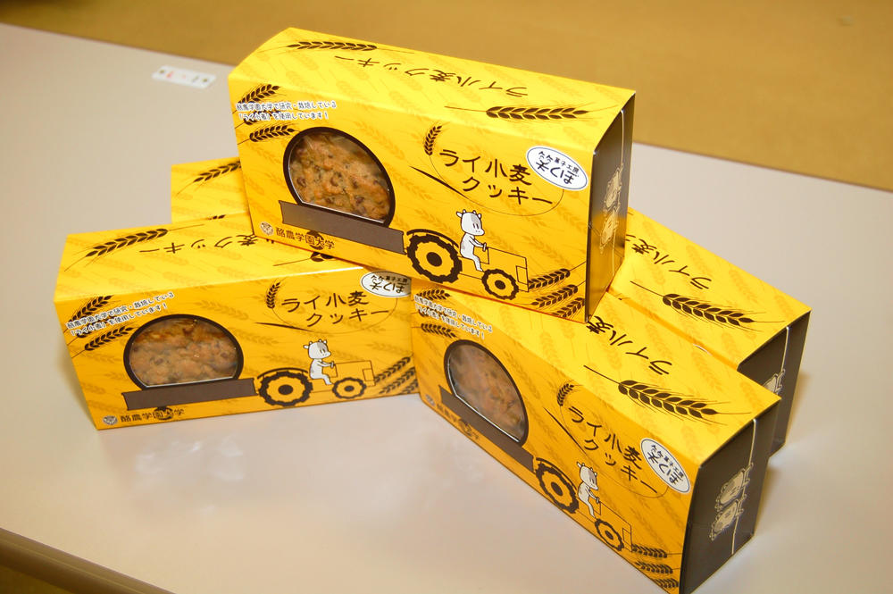 クッキーのレシピは、循環農学類・食物利用学研究室(宮崎早花 講師)協力のもと開発。ザクザクした食感で香ばしい味わいに仕上がっている。またパッケージデザインは、同研究室の櫻庭尚人さんが考案。ライ小麦と、自動車でクッキーを運ぶウシがデザインされている。