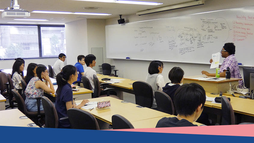 高校生を対象とした5日間の短期集中型のスキルアップ講座です。講座前半は食文化に関する様々なトピックを通して英語の4技能(読む、聞く、書く、話す)をバランスよく学びます。後半にはプレゼンテーションまたは学内TOEFL対策のいずれかのコースを選択し、それぞれのコースで必要なスキルを集中的に伸ばします。授業には、講師のほかTUJの現役学生がティーチングアシスタント(TA)として加わり、参加者をサポートします。また、2日~5日目の授業冒頭に行われる「TAセッション」は、参加者と年代の近いTAがリードし、フレンドリーな雰囲気で英語を学べます。TUJや海外の大学への進学を希望する方をはじめ、夏休みを利用して集中的に英語力を伸ばしたい方などに最適な講座です。