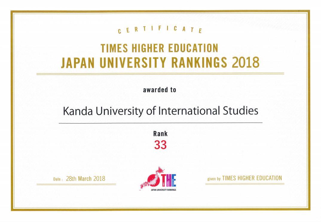 神田外語大学がTHE世界大学ランキング日本版において総合33位にランクイン — 教育充実度、教育成果、国際性の3項目で高い評価