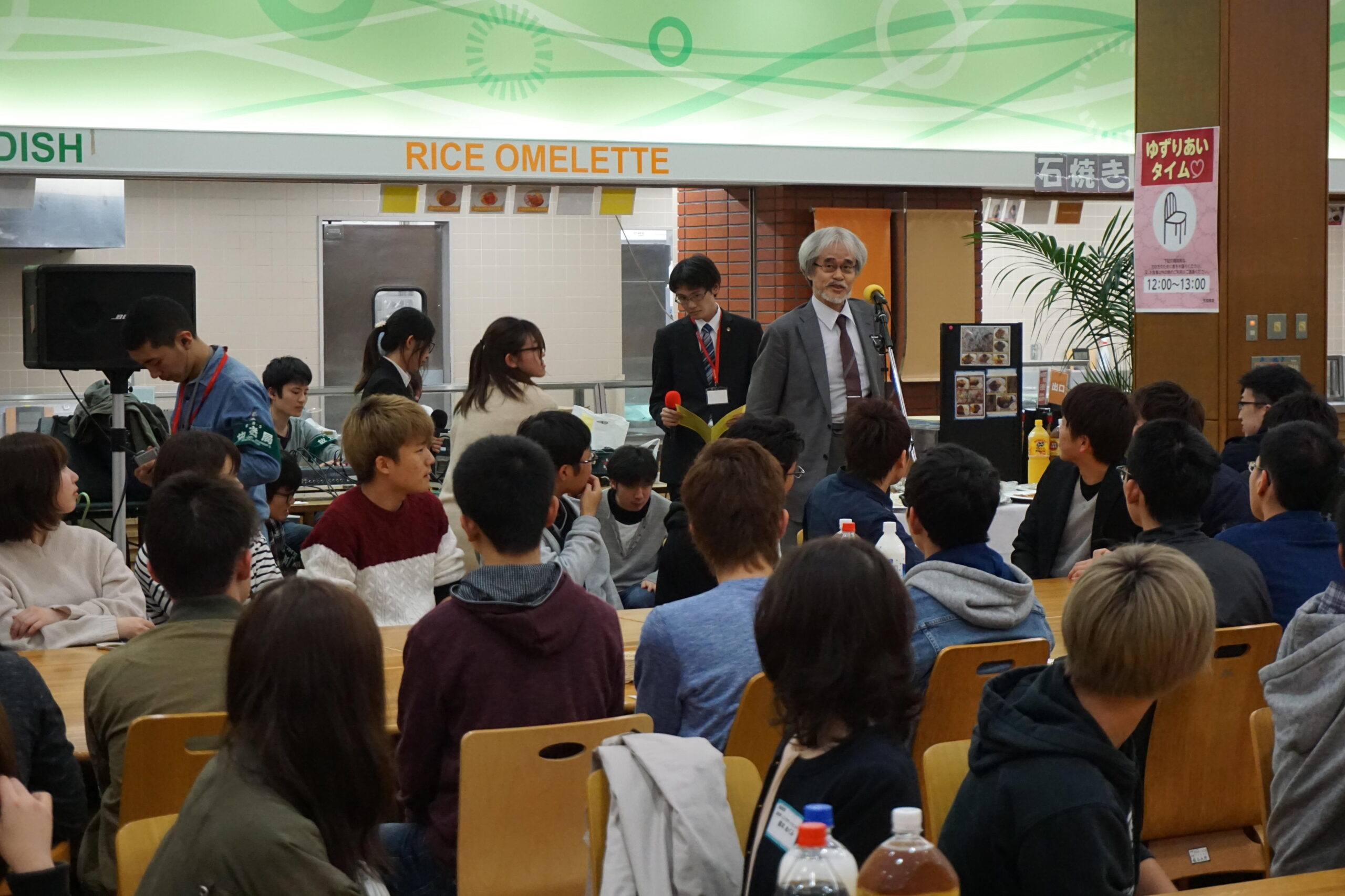 「ふるさとタイム」は、新入生のほか、在学生や教職員等も参加し、入学後の大学生活を順調に進められるよう、学生同士、あるいは学生と教職員との繋がりを広げる機会として提供しており、今年で11回目を迎える。