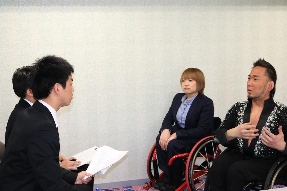 題材に取り上げたのは、大学の講演会で出会った人物。大学1年での突然の失明を乗り越え、パラリンピックの柔道日本代表として出場した廣瀬順子選手(銅メダリスト)・悠選手と、いじめを苦に自殺を図った経験を持ちながら車椅子ダンサーとして人々に勇気を与える安藤広二さん・林美穂さんで、それぞれにインタビューし、動画とテキスト2種類の教材にまとめた。