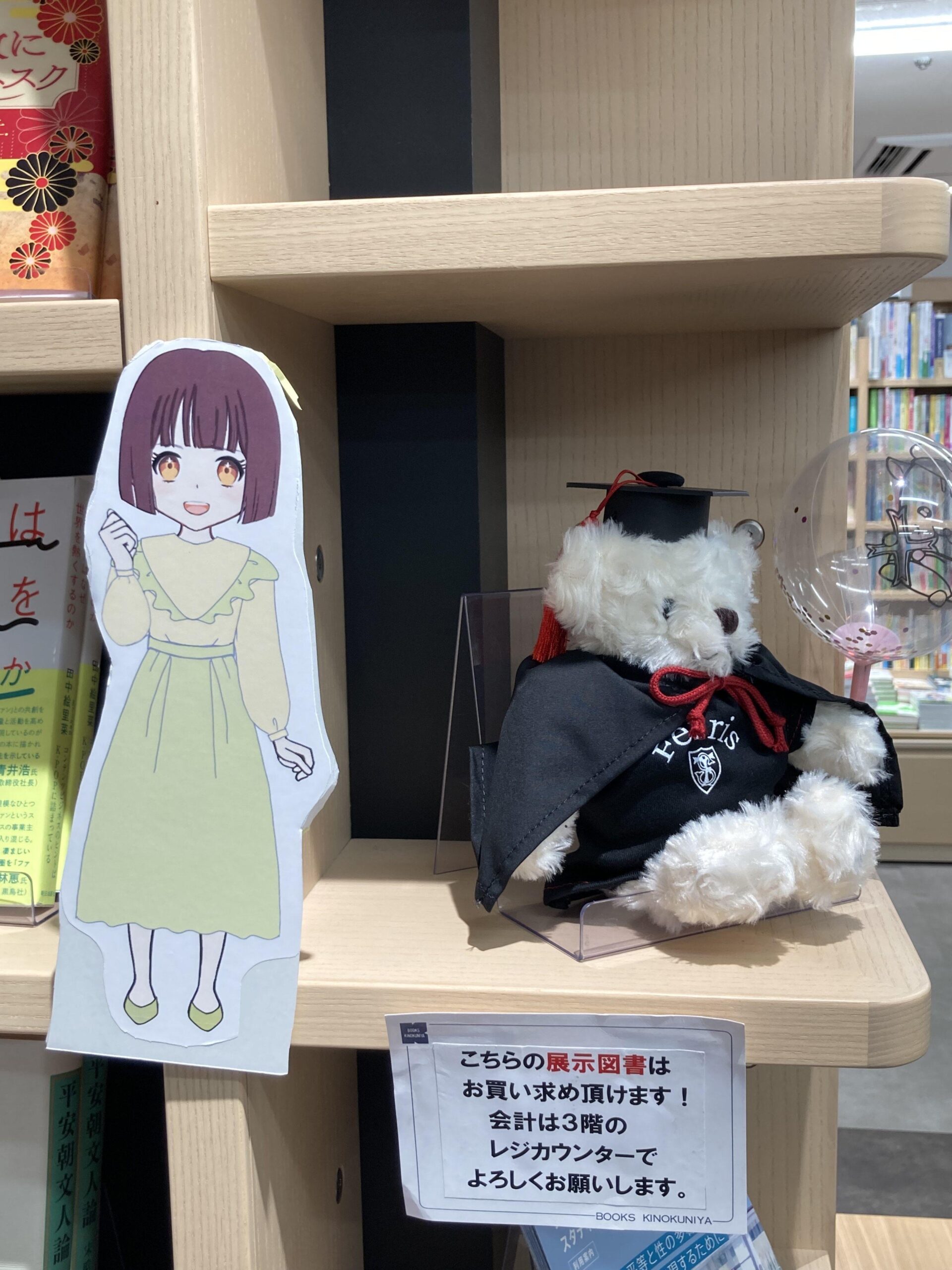 2025年春、フェリス女学院大学に生まれた新しい学びのひとつが文化表現学科です。既存の学科で育まれた、古今東西の言語・文学・歴史・音楽・舞踊・演劇・映像・デザインなどを対象とした、鑑賞・表現・研究の力がこの新たな学びの土壌といえます。このたびの選書展示では、日本・欧米・アジアの文化表現を学ぶ本学科の船出にふさわしく、国や地域、ジャンル、ジェンダーなどを越境した表現を考えることをテーマとした内容の本を選び、学生たちが感じたものを他者へ勧め伝える試みです。個々の発信の集合体が新たな学びの世界を表現できていれば目標の半分は達成できます。そして、本とともに、フェリスで生まれたキャラクターたちを装飾しています。キャラクターズの愛らしさに惹かれて選書展示へ多くの方に立ち寄っていただき、学生たちが制作したPOPを参考に本と出会い、文化表現学科の学びを理解し、共に学ぶ仲間、連携の手を差しのべてくださる方々との出会いに発展できれば、目標は完全に達成します。本学から新宿へは相鉄で一直線につながった今、紀伊國屋書店本店アカデミック・ラウンジへぜひお越しください。