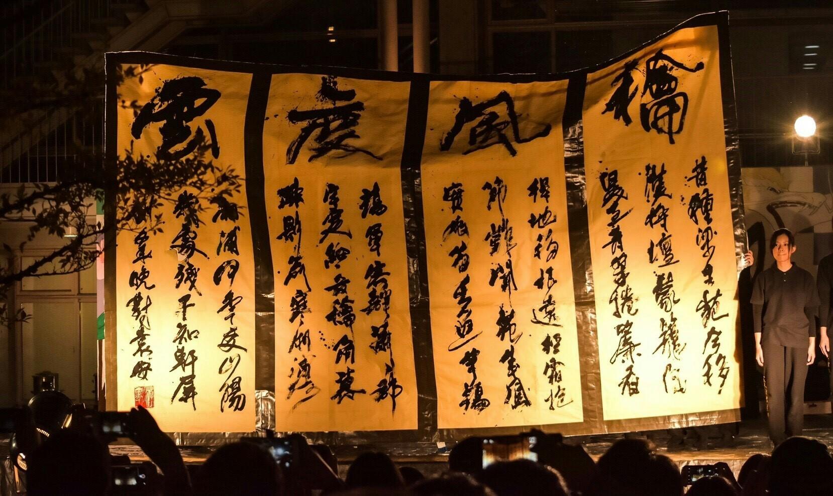 大東文化大学を代表する学生団体によるパフォーマンス(書道部による書道パフォーマンス、全學應援團による演舞)