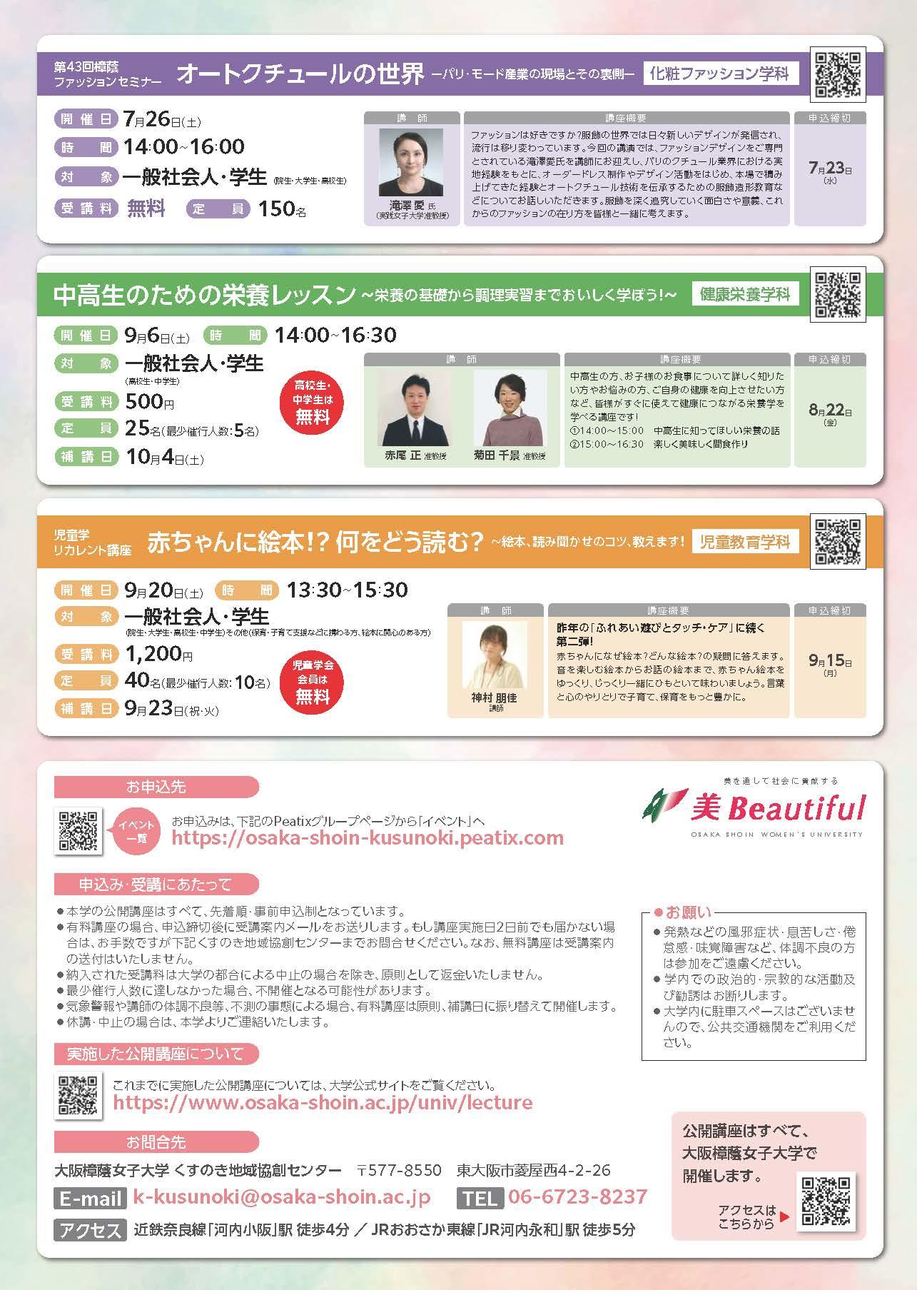 【大阪樟蔭女子大学】令和7年度春期公開講座のご案内