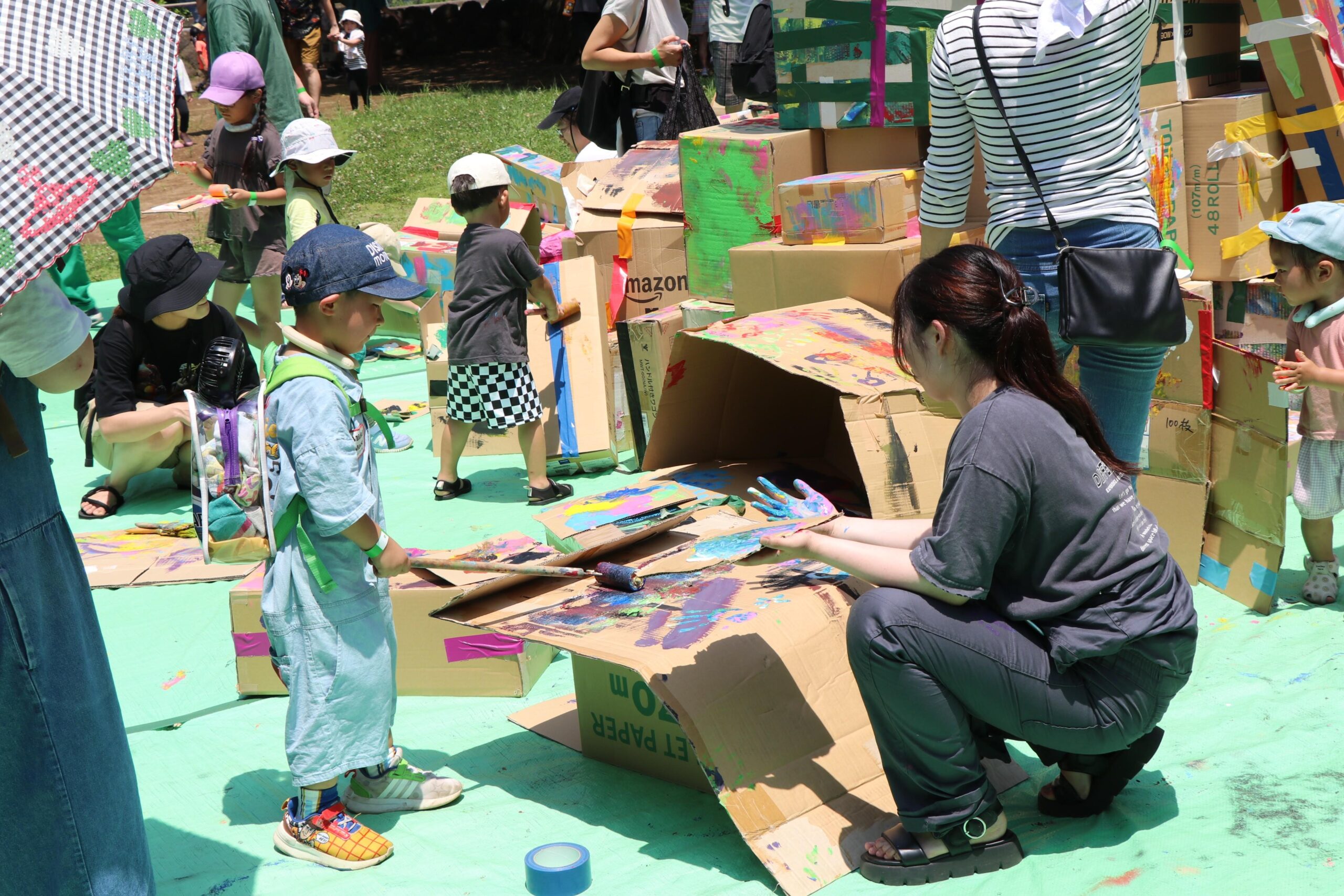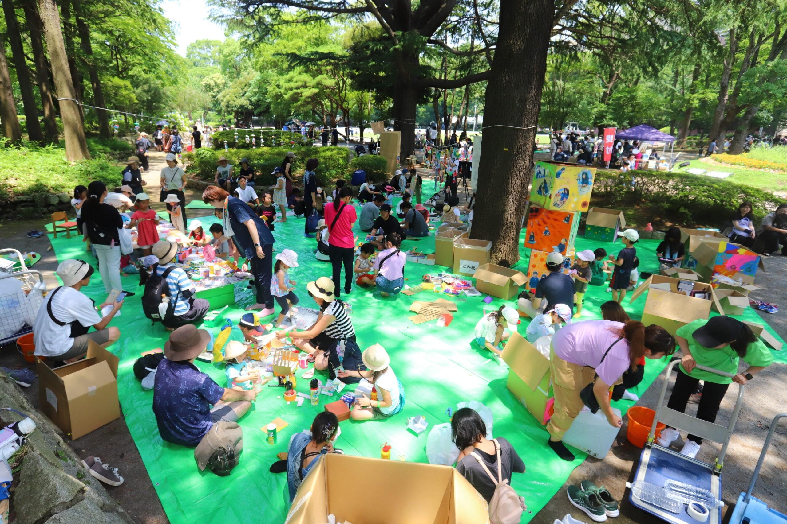 遊具を撤去したりボール遊びを禁止したりする公園が増加する中、公園全体を使って親子で「思いっきり遊ぶ体験」ができる、毎年人気のイベントです。決められた枠の中で遊ぶのではなく、子どもたちの自由な発想と、主体性・創造性を育む造形ワークショップを数多く実施し、子どもや大人に「どう遊ぶか」を問いかけます。