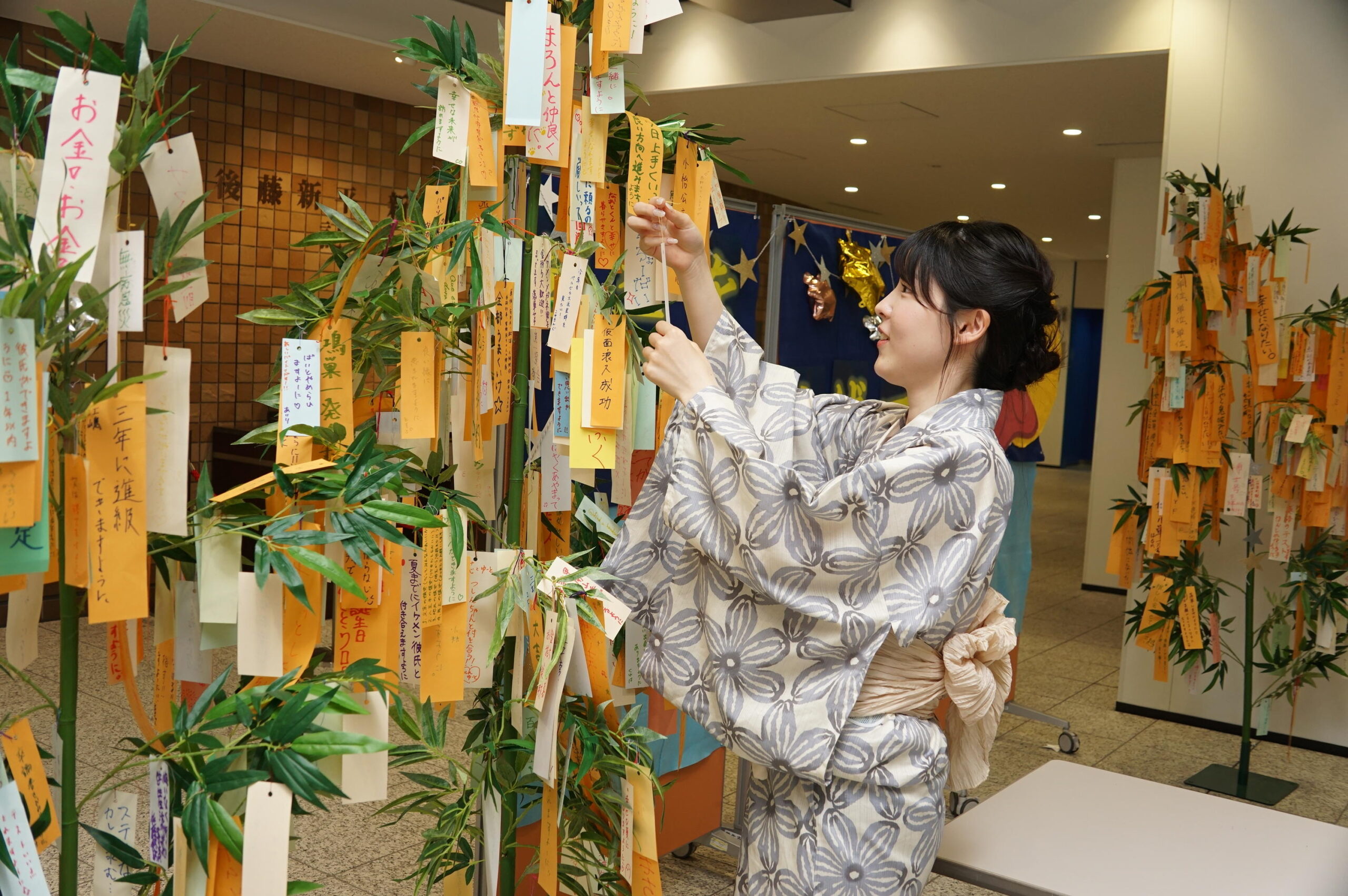 各キャンパスに設置した七夕「笹の葉」に願い事を書いた短冊を飾るイベント!