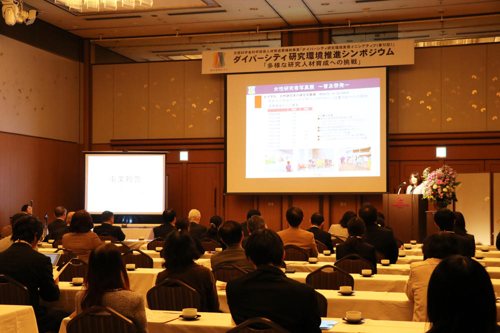 12月19日に、同事業の取り組みの一環としてダイバーシティ研究環境推進シンポジウムを開催。当日は、大学、企業、研究所などから約80名が来場した。