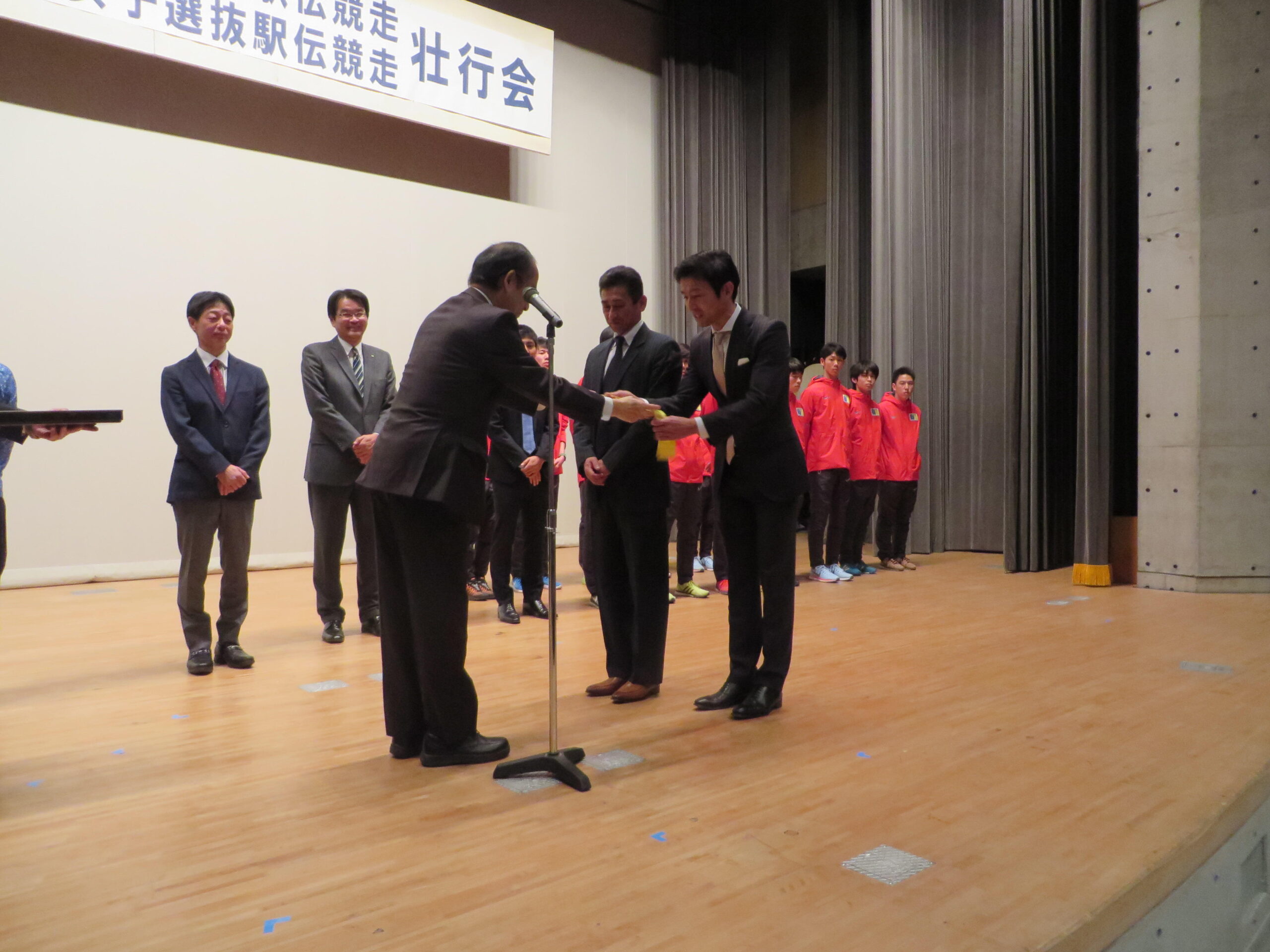 法人本部の小野元之理事長特別補佐から両監督にそれぞれ襷(たすき)が渡された後、白幡晶学長が「自己管理とチームを大事にして頑張っていただきたい。それによって必ず結果がついてくる」と激励した。