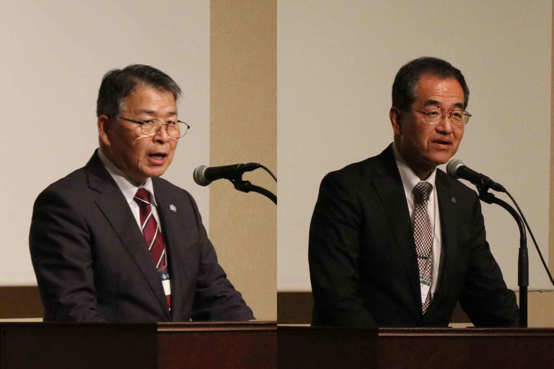シンポジウムは、金沢大学の山崎光悦学長と信州大学の濱田州博学長の開会あいさつに始まり、続いて文部科学省高等教育局学生・留学生課の井上諭一課長(代読:同課 槇大翔氏)があいさつ。その後、金沢大学の大谷吉生副学長と信州大学の田中清副学長が、各大学における留学生就職促進プログラムの取り組みについて説明した。