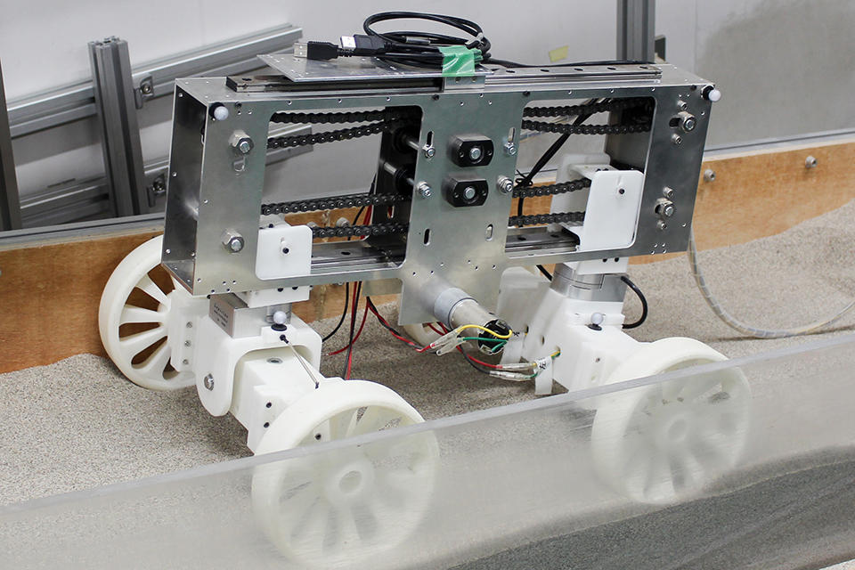 芝浦工業大学 — 砂地やぬかるみでも足を取られないタイヤの間隔が動く走行システムを新開発 ~惑星探査機の研究から発見、レスキュー活動や雪上・農業に応用可能~