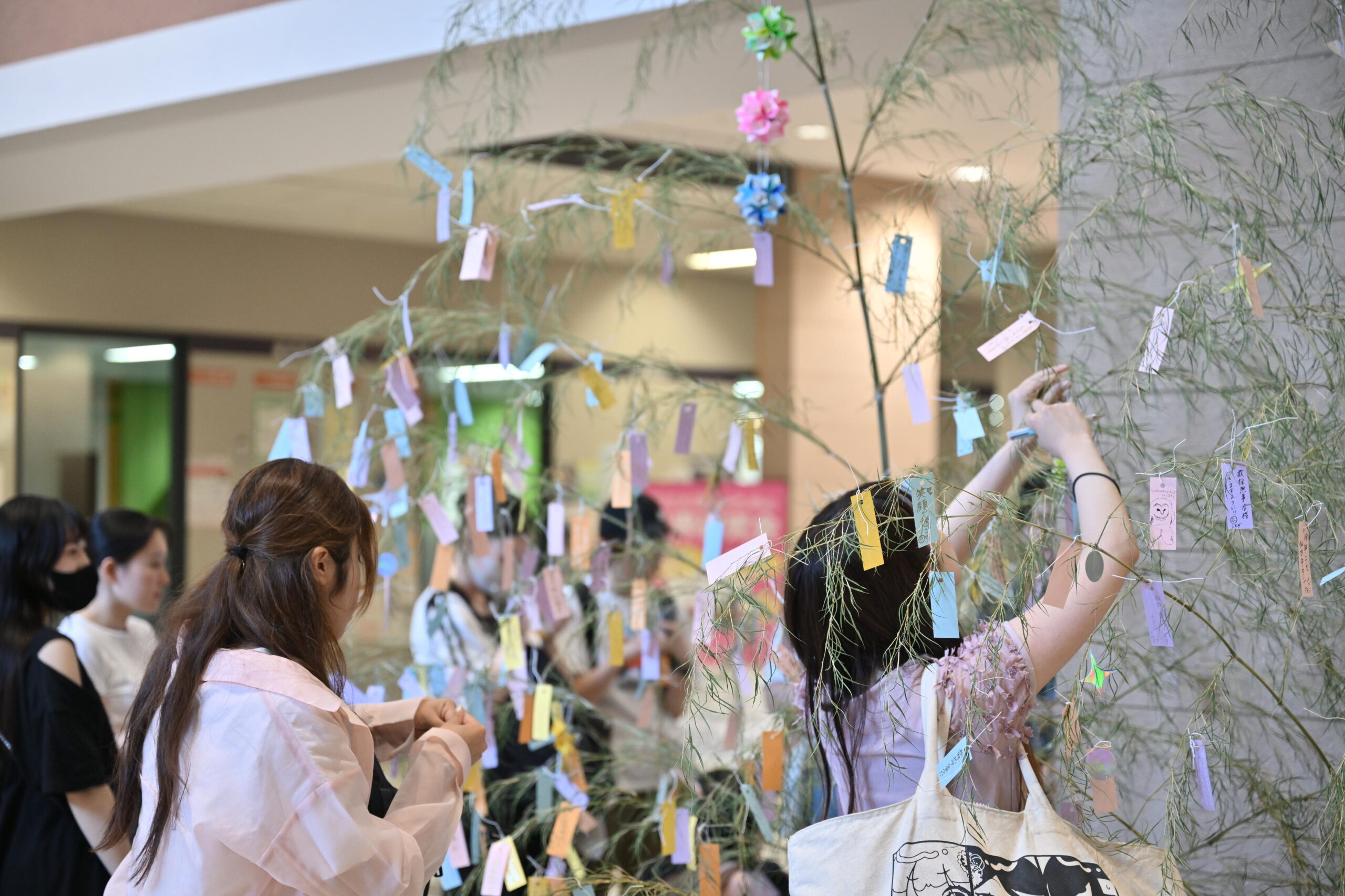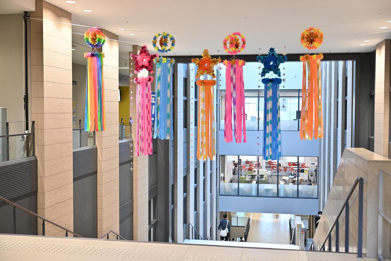 今回の七夕企画は「大学生活に季節感をもたらし、古来の日本文化に触れる機会を設ける」というコンセプトのもと、学生たちが自ら立案・準備・実施までを担い、6月30日から装飾の設置を開始しています。