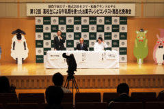 このたび、応募があった184点の中から入賞作品9点(最優秀賞1点、優秀賞2点、奨励賞5点、特別賞1点)を7月に選定。産学連携の取り組みとして、審査に協力した(株)セコマ(道内最多の店舗数を誇るコンビニチェーンを運営)が8点を、札幌グランドホテルが4点を商品化し、期間限定で発売することとなり、9月29日(金)に商品化発表会を行った。