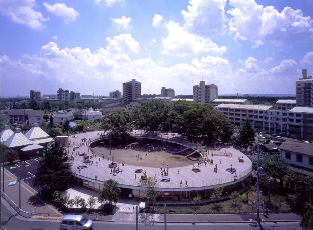 評価の対象となった『ふじようちえん』(東京都立川市)の園舎は、2007年に完成。「行き止まりのない建物」を目指し、園庭を囲む楕円形にデザインされた。
