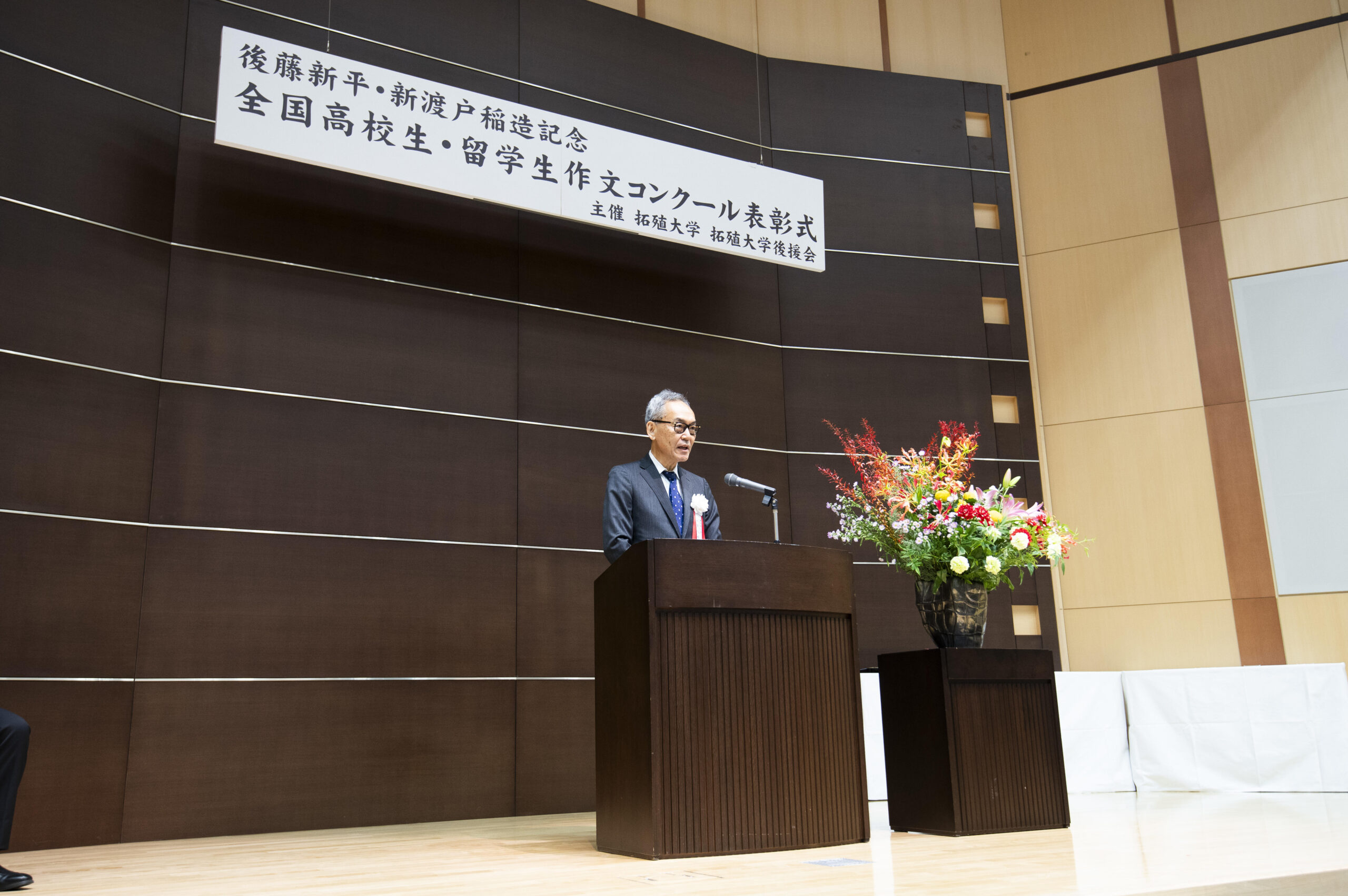 第27回を迎える当作文コンクールは、明治から大正にかけて、日本が国際社会に登場していく過程で重要な足跡を残した拓殖大学第三代学長後藤新平、同第二代学監新渡戸稲造の精神を受け継ぎ、全国の高校生や外国人留学生を対象に「国際協力」「国際理解」「社会貢献」の重要性を広く伝え、グローバルに活躍できる人材の育成を目的に実施しています。