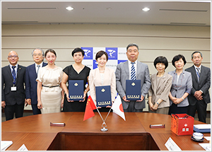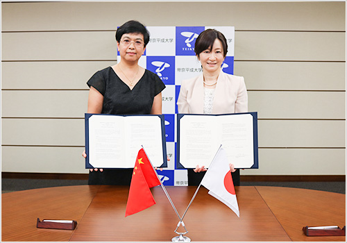 中華人民共和国・ハルビン医科大学基礎医学院および北華大学と帝京平成大学の間で「学術交流協定」の調印式が、8月21日(月)に池袋キャンパスで行われた。