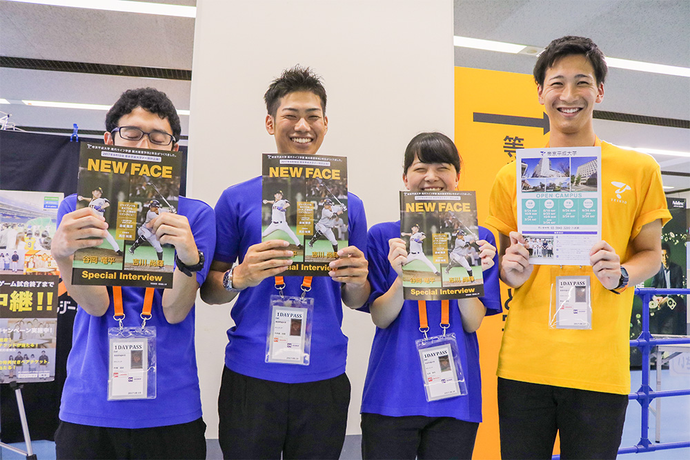 先着2万名に配布したフリーペーパーは学生が実際にジャイアンツの選手・コーチなどに取材し、記事にした内容。今年は2016年ドラフト1位 吉川尚輝選手、同2位 畠世周選手、同3位 谷岡竜平選手、橋本到選手、宮國椋丞選手、金城龍彦コーチ、真田裕貴打撃投手を特集した。