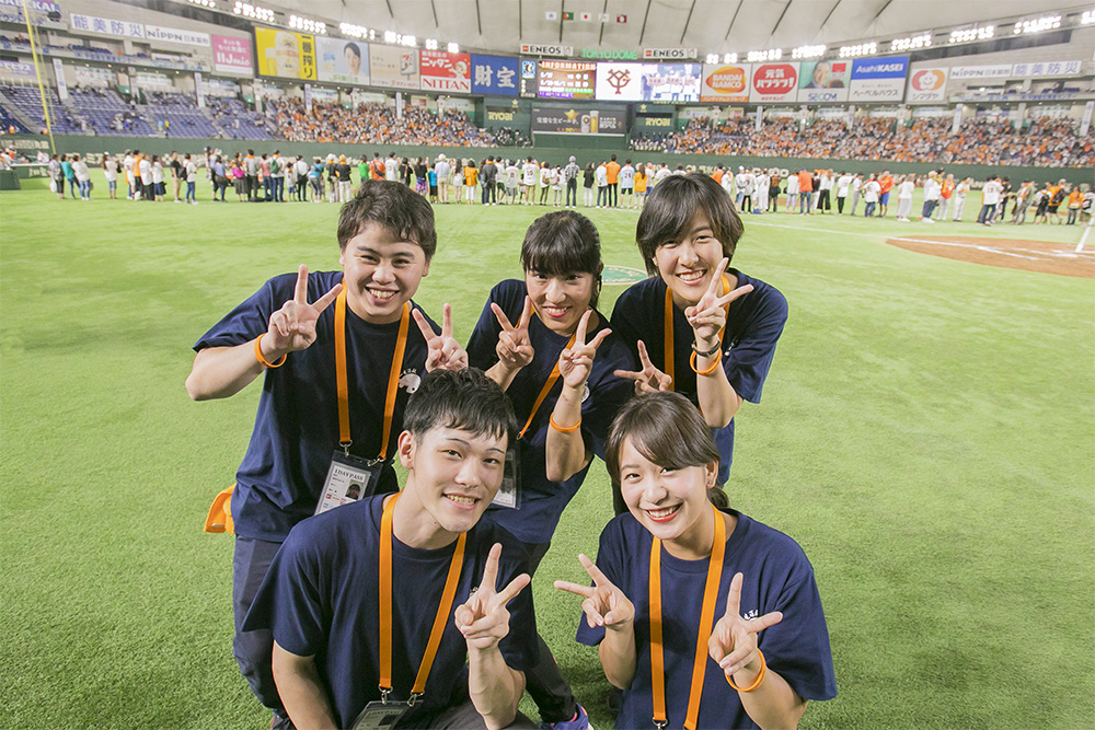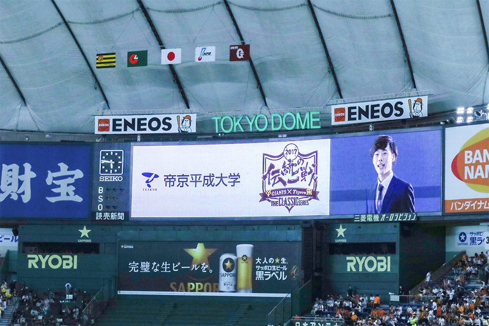 読売ジャイアンツ公式戦2試合、8月10日(木)阪神戦と19日(土)DeNA戦にて帝京平成大学が1day(ワンデー)協賛し、「帝京平成大学デー」を開催。現代ライフ学部観光経営学科の学生が授業の一環として、公式戦の企画・運営に携わった。